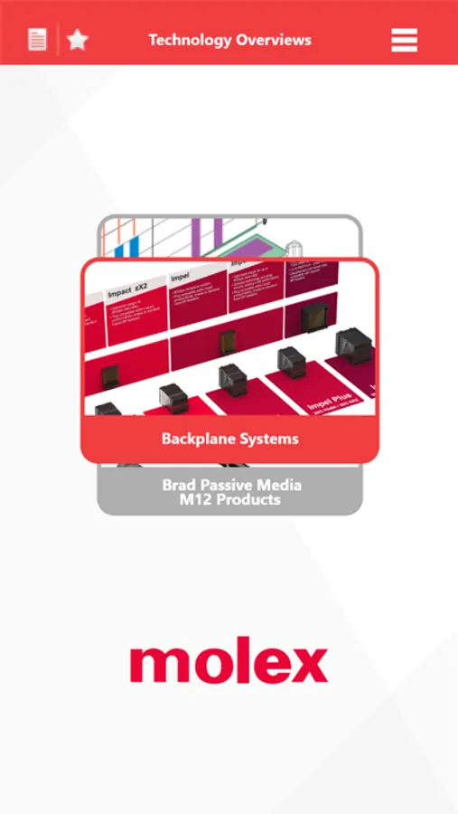 Mobile App for anytime, anywhere access to Molex connector solutions. Quickly identify Molex Connector product families that meet your design needs. The Molex Connector Overview App gives mobile device users ready-access to information on over 100 different Molex Connector product families. The Molex App allows users to visually compare product families and quickly access additional product and detailed part number information.