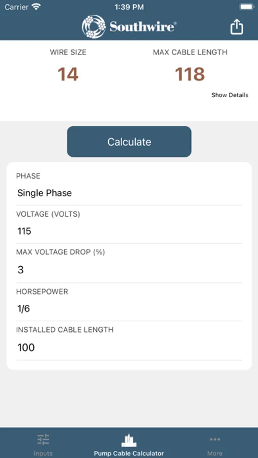 Calculates the proper wire size or install length needed for various installation methods of pump cable, per NEC® recommendations.