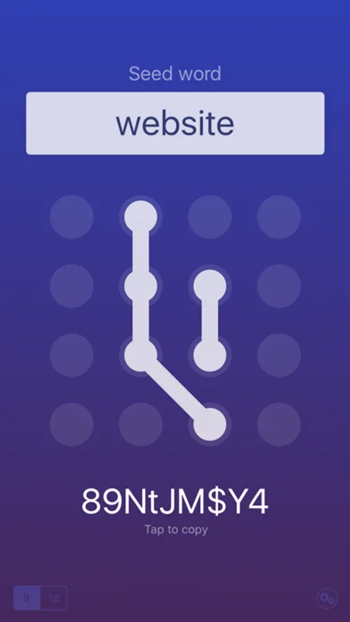 DotPass is an app for generating and retrieving passwords. You enter a graphical pattern in a dot grid and a plain text seed word (like "facebook", "work email" or whatever makes sense to you), and the app then generates a password based on this unique combination.