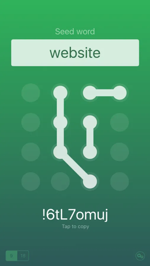 To make these passwords secure you must of course keep your pattern and seed words secret, just as you would with your password. If you are worried about someone looking over your shoulder you can use the extra privacy features in the app to hide the pattern, seed or password after entry. For added security the app automatically resets if left in the background more than a minute.