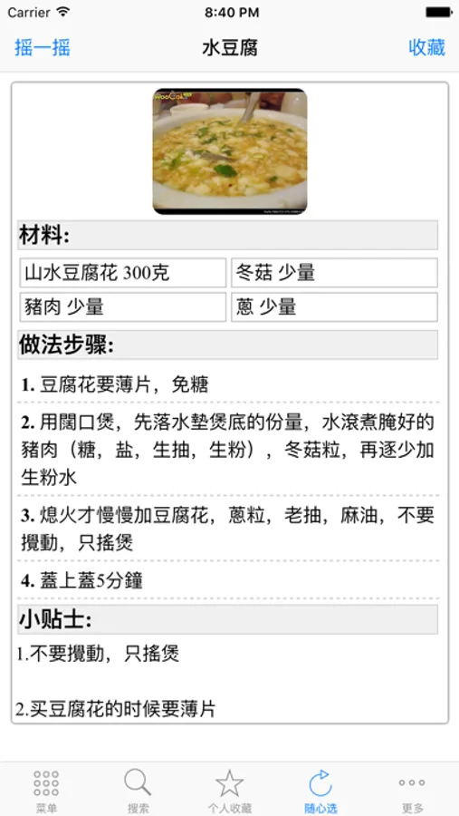 原生iOS界面,完美适配。最简洁清新的粤菜大全,离线数据,全设备通用。一键收藏,摇一摇随机选择菜谱,支持全文搜索。
