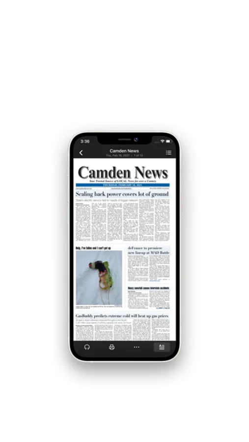 With the Camden News app, you can view every section of the newspaper in a full-content digital replica. Easily read today's edition and share your favorite articles. The app is free to download and you can try the first three editions at no charge.