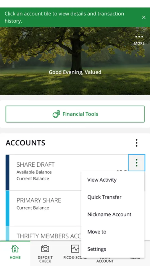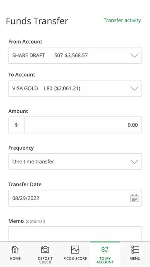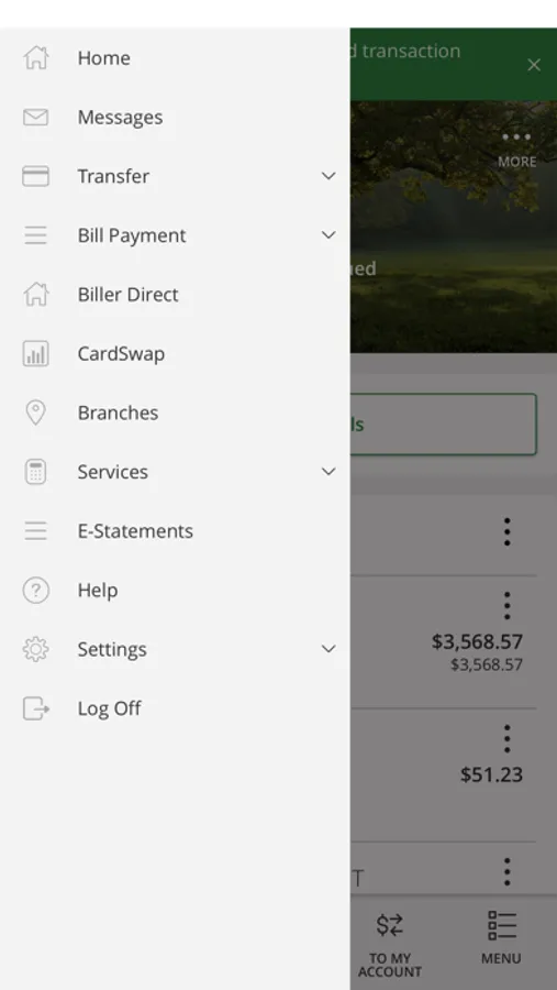 • Quickly log in with the same username and password as your online banking account.