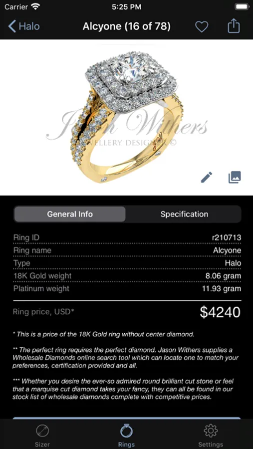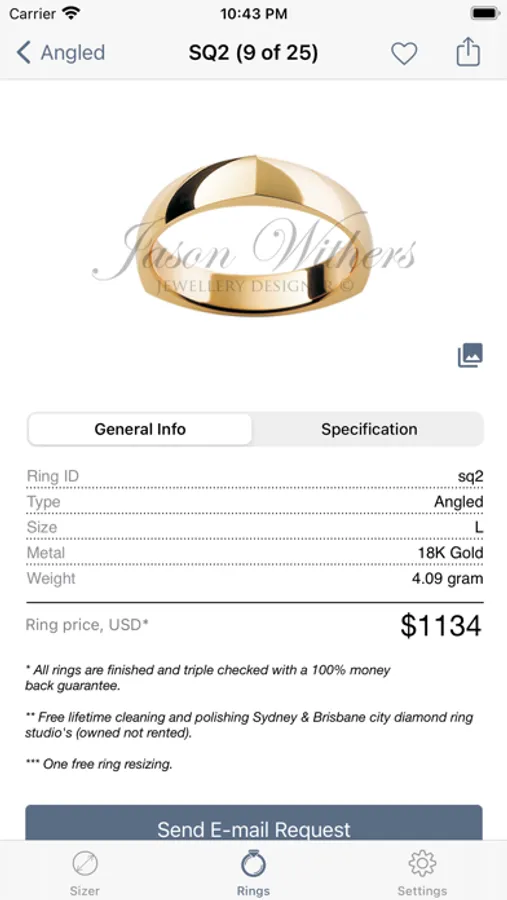 Also we have integrated our "Engagement & Wedding Rings" catalogue and Instagram feed from Jason Withers into this app. You can request quotes through the "Enquire by email" function of the app. One of our expert jewellery consultants will then respond to the enquiry and assist you with your query.