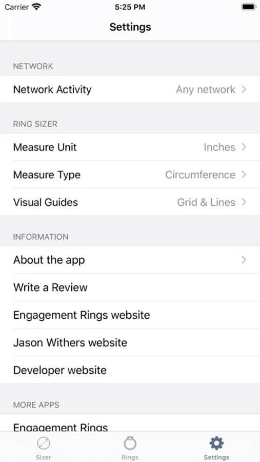 Handy utility from Jason Withers created to easily find the ring size in the different countries. There are some unique features supported by the app: