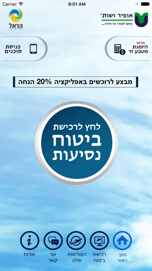 מעכשיו ניתן לטוס לכל מקום בעולם בצורה שקטה, בטוחה ובמקרה ששכחתם לעשות ביטוח נסיעות, עם אפליקציית אופיר ושות׳ ניתן לעשות זאת גם משדה התעופה.
