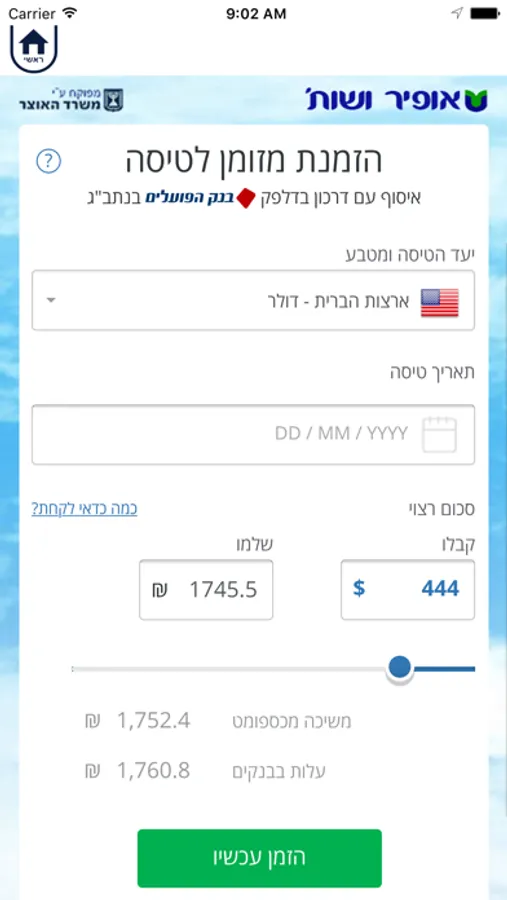 ועכשיו אנחנו מספקים גם שירות חדש! רכישת מט״ח ישירות מהאפליקציה וקבלתו בשדה התעופה בטרמינל 3 מסניף בנק הפועלים בדיוטי פרי פתוח 24 שעות!