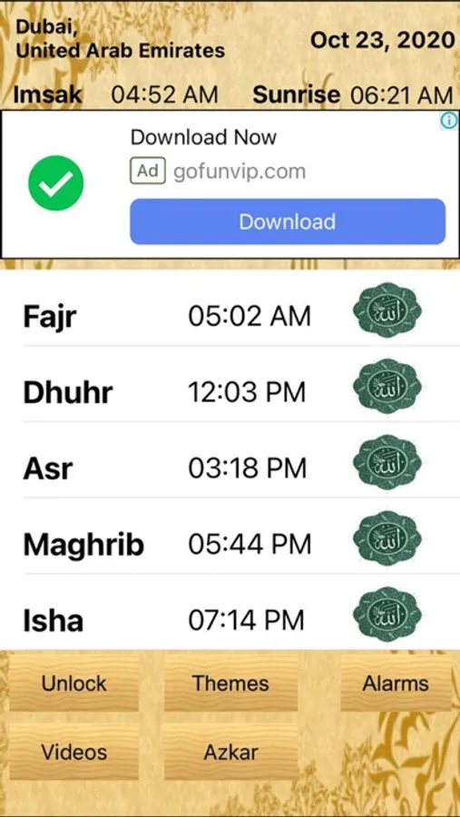 - Alerts/ Reminders for all the 5 prayers with Athan sound.