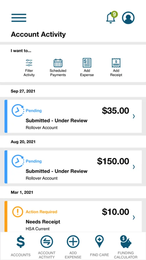 See recent transactions and transaction details