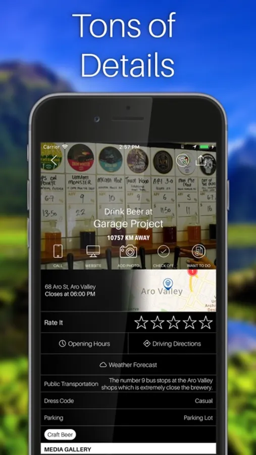 - Entries have descriptions, map, local weather, relevant articles, Tips and Things to Do