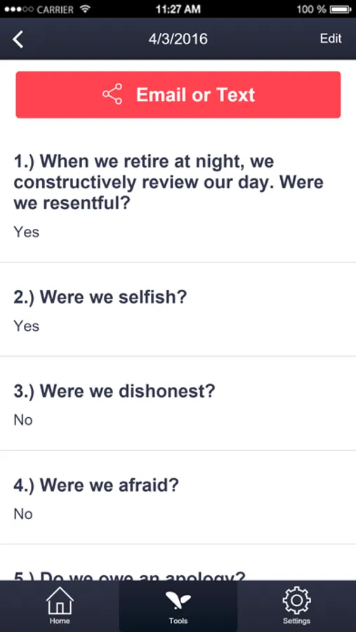 It also has a Spot Check Inventory that allows you to quickly get rid of resentments when on the go and you can later add more detail via your computer because all data is securely synced to the cloud using the same security as banks!