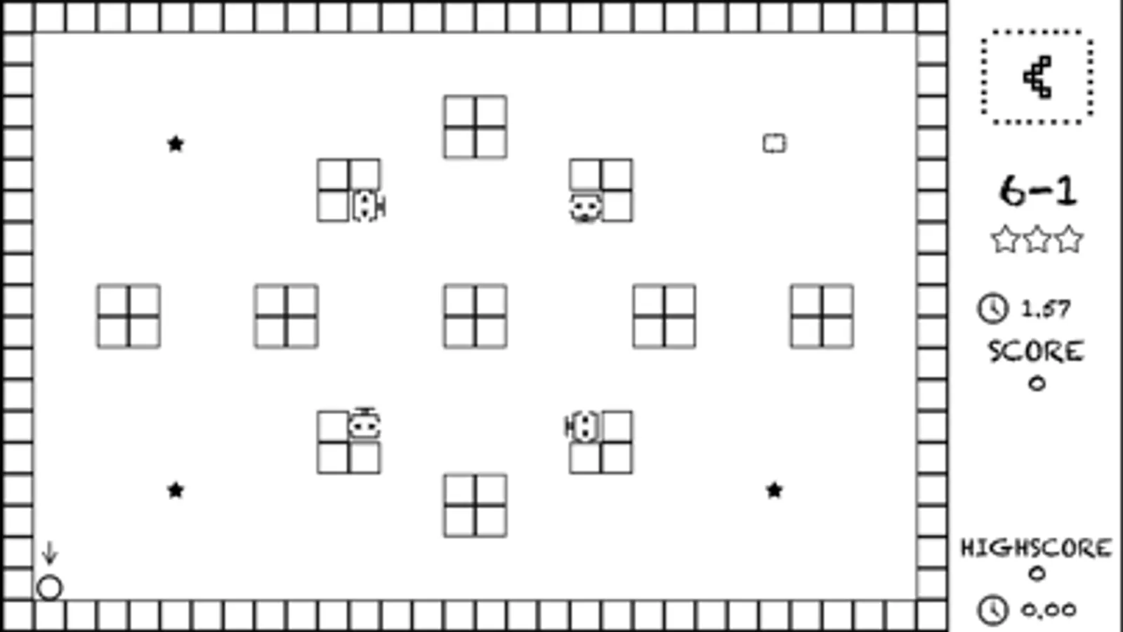 jump-O is a minimalist game, with minimalist art, where you play as a circle in a square world. Jumping and moving at the right time, to avoid spikes and bullets, is the key to complete every single level. The description is minimalist too! :)