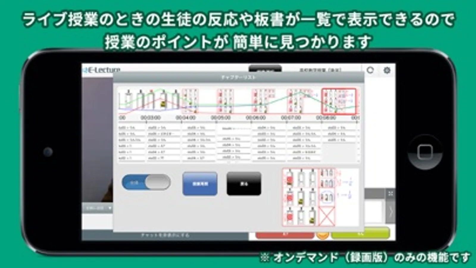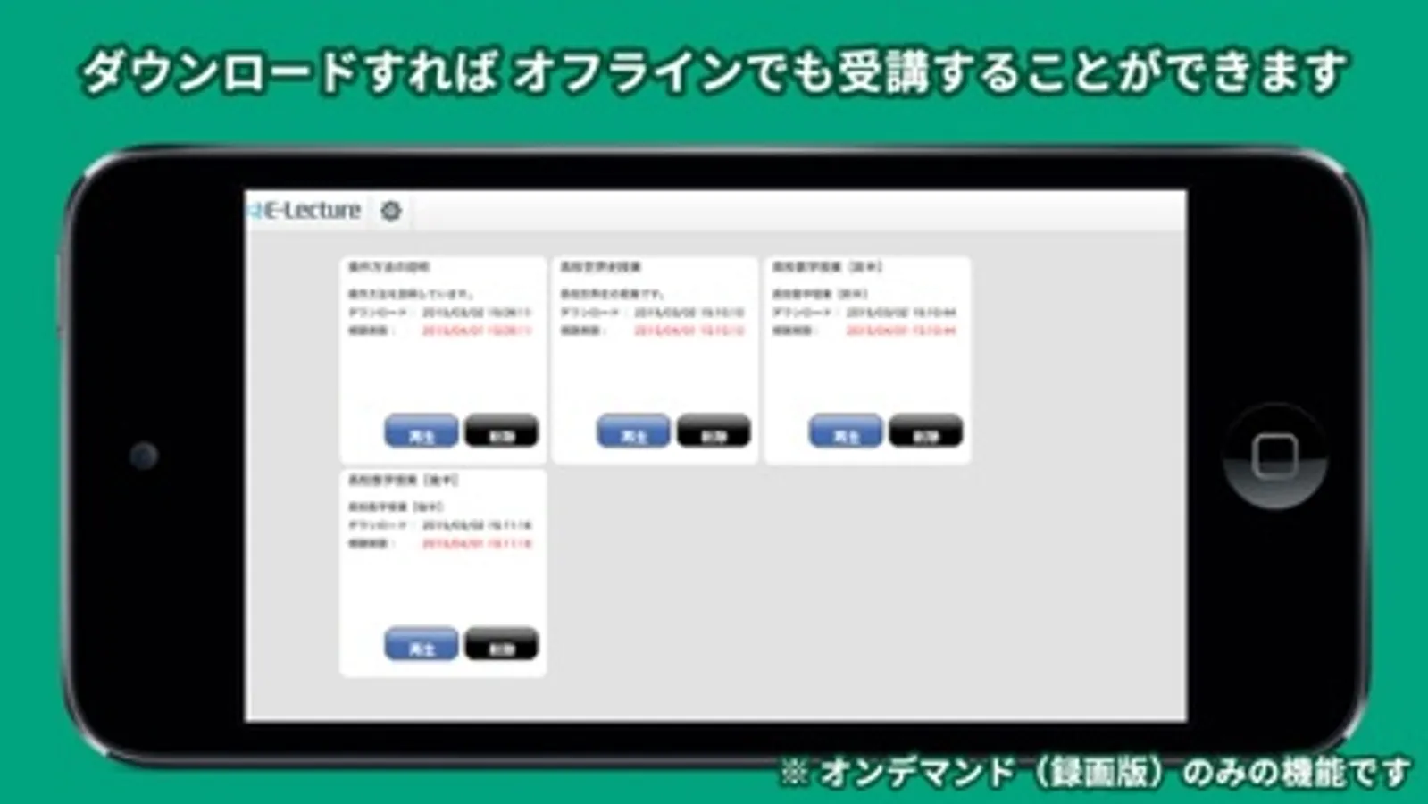・ライブ版(生放送)とオンデマンド版(録画)のどちらの授業でも手軽にiPhoneやiPod touchなどを用いて受講できます。