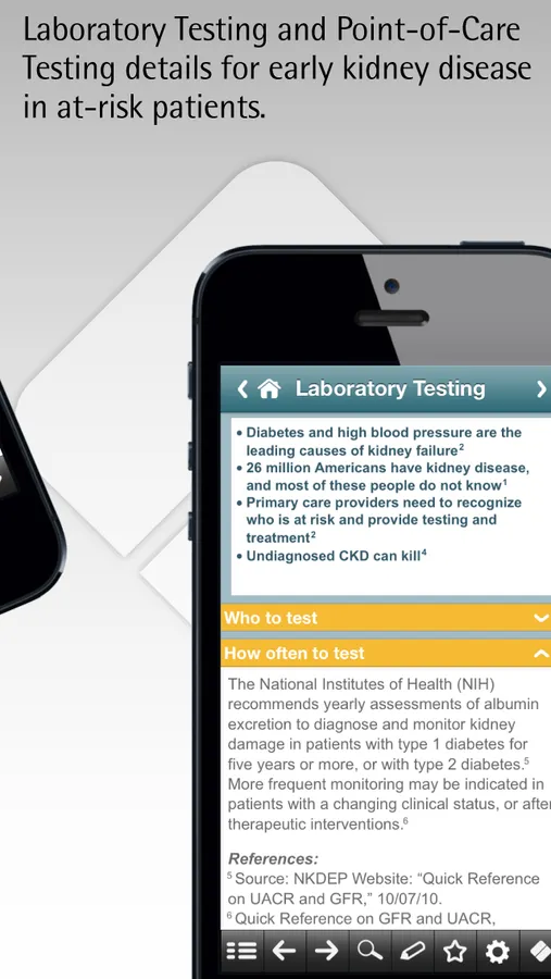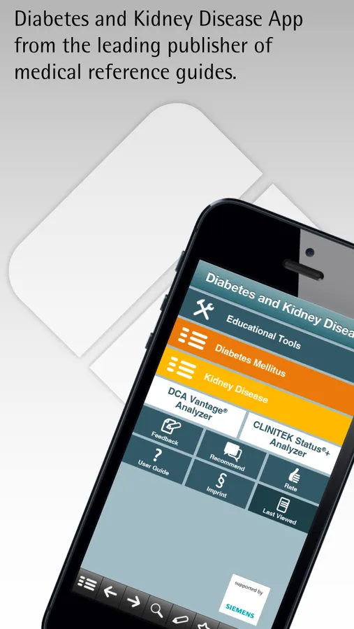 The Diabetes Clinical Care App contains current information on the diagnosis and management of diabetes mellitus and diabetic and chronic kidney disease. The App includes a special section on the evaluation of albuminuria/proteinuria, and early detection of kidney disease using the DCA Vantage® Analyzer.