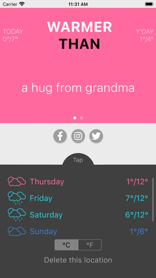 WeatherThan compares today's weather to yesterday's so you know if it's hotter, colder, warmer, or cooler.
