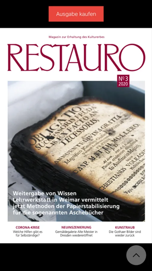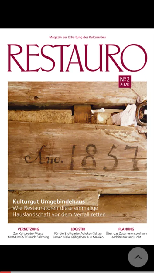 RESTAURO – die Zeitschrift für Restaurierung, Denkmalpflege und Museumstechnik – bietet das ganze Spektrum der Konservierung, Restaurierung und Erforschung von nationalem und internationalem Kulturgut. RESTAURO informiert fundiert und praxisnah über Kunst- und Kulturguterhaltung, liefert Lösungen zu Fragen der Konservierung und Restaurierung und diskutiert mit den Köpfen der Branche die relevanten Themen.