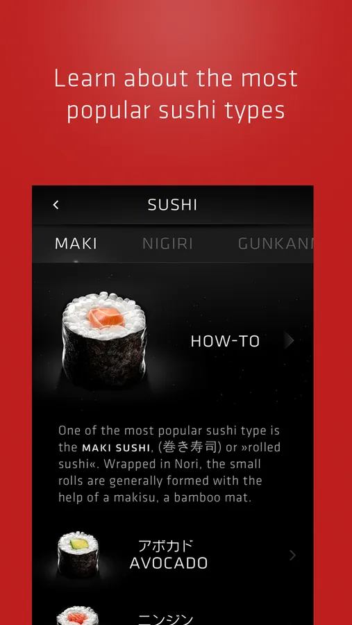 The most important thing for great sushi is, of course, the fish. Without good fish you won’t have good sushi. That’s the reason why we made a whole section in our app about fish.