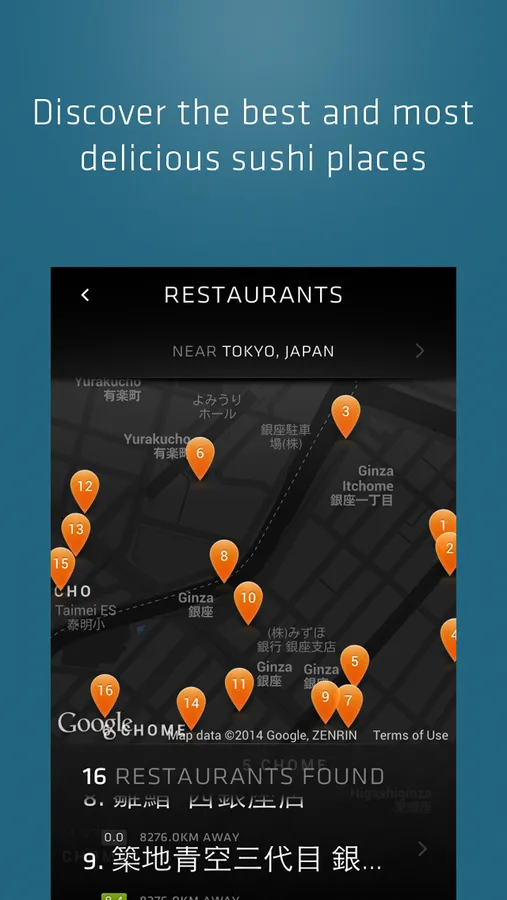 The app takes your current GPS coordinates and uses the Foursquare API to find the best and nearest spot for you to eat some delicious sushi.