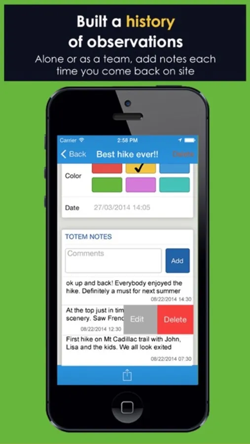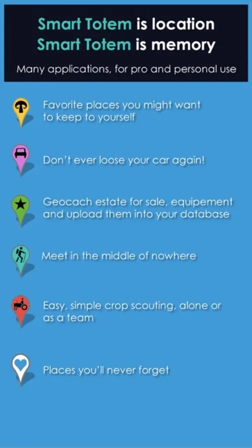 Smart Totem is a simple and convenient app to save places, built a history of notes and observations and share with other Smart Totem users to work as a team: