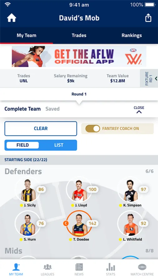 The Official AFL Fantasy app is updated for the 2023 season! FREE for all users, the app allows you to play AFL Fantasy when you’re on the go.