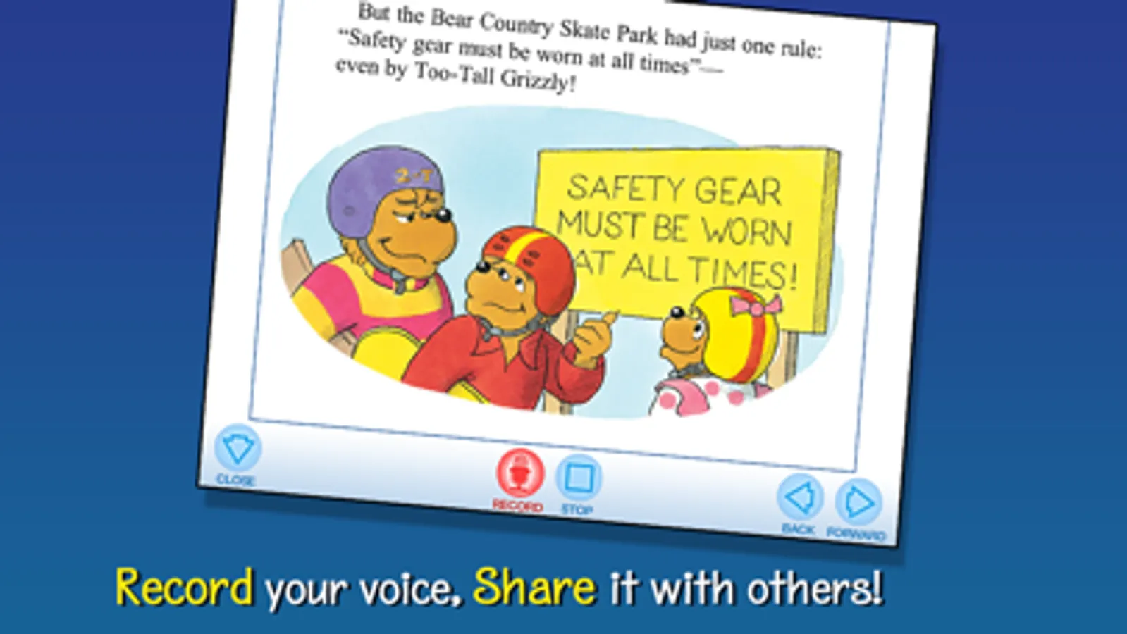 Join the Berenstain Bears in this interactive book app as Sister and Brother Bear learn an important lesson about skateboarding safety! Explore pictures, learn new vocabulary, and personalize the story with your own narration. Will Brother and Sister fall into peer pressure and forego safety gear at the skatepark?