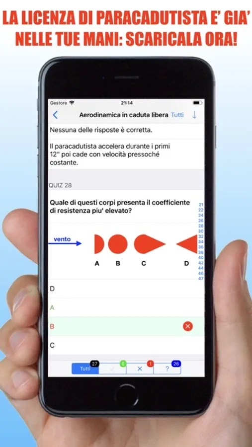 - Aerodinamica applicata ad un corpo in caduta libera (27 quiz);