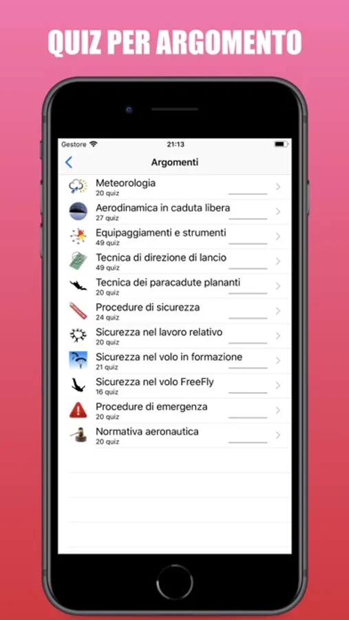 - Quiz per argomento;