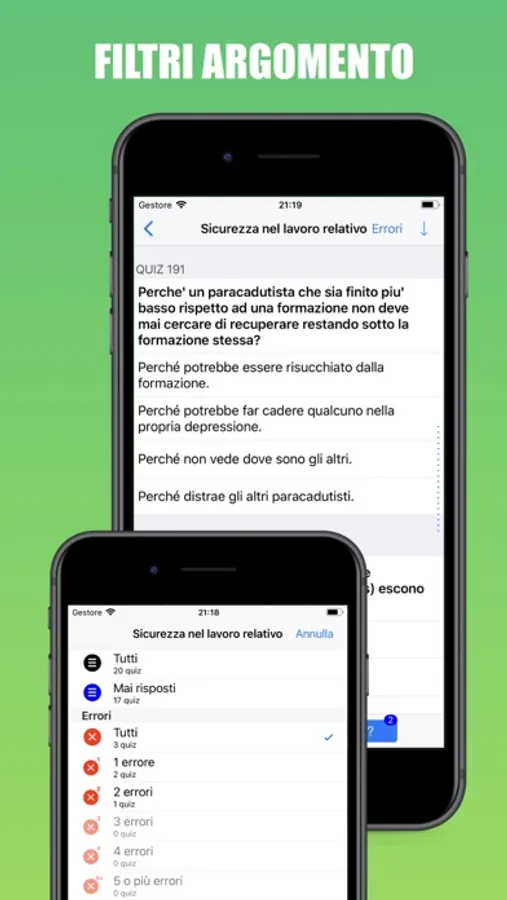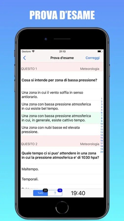 Permette di esercitarsi sul singolo argomento e di simulare una reale prova d'esame con 20 quiz in 20 minuti registrando gli errori commessi e sviluppando statistiche accurate sul livello di apprendimento raggiunto!