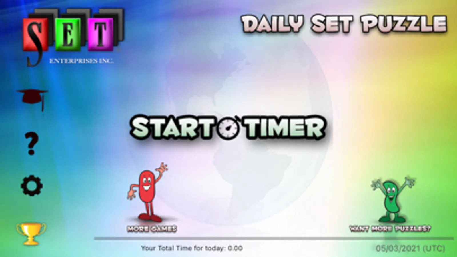Triple Matching Mania! Sharpen your mind daily by playing a free SET® puzzle. Each day the Daily SET® Puzzle app generates a new puzzle so players can have fun and compare their rankings with other players around the globe playing exactly the same puzzle. The puzzle changes
