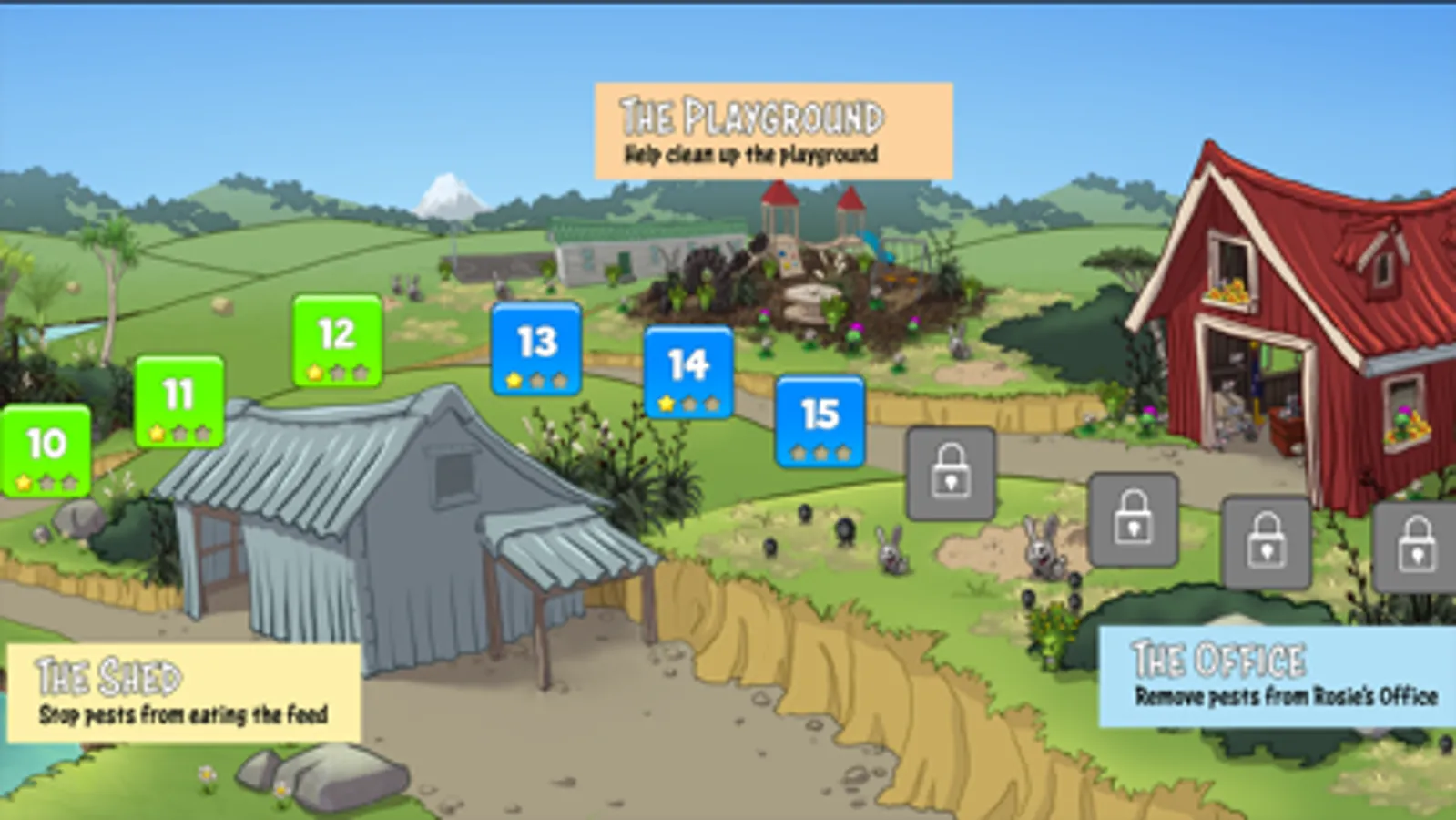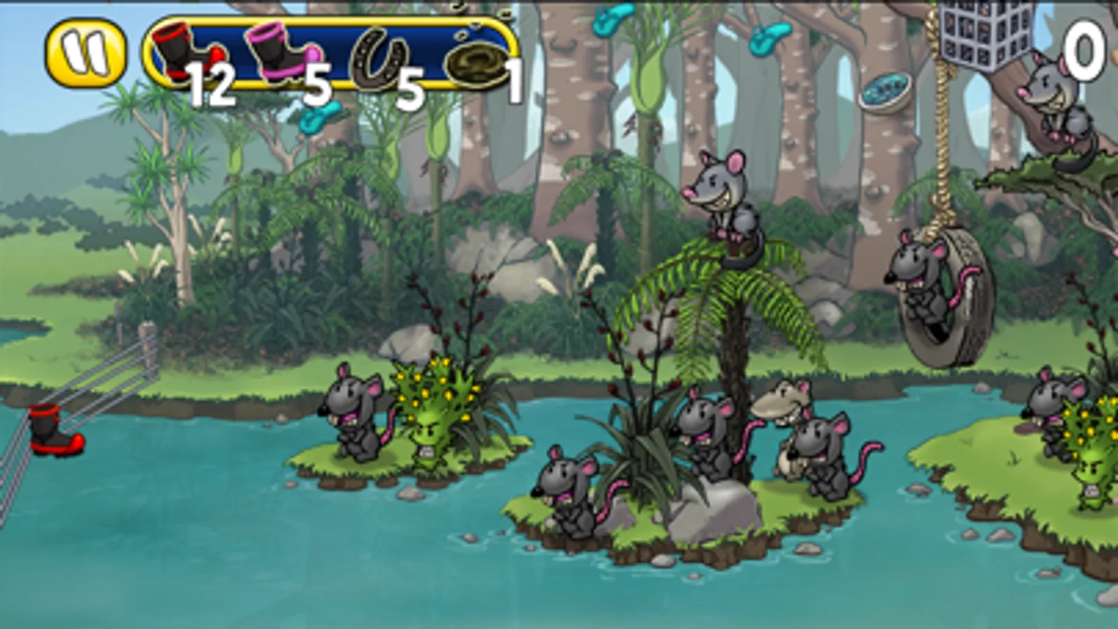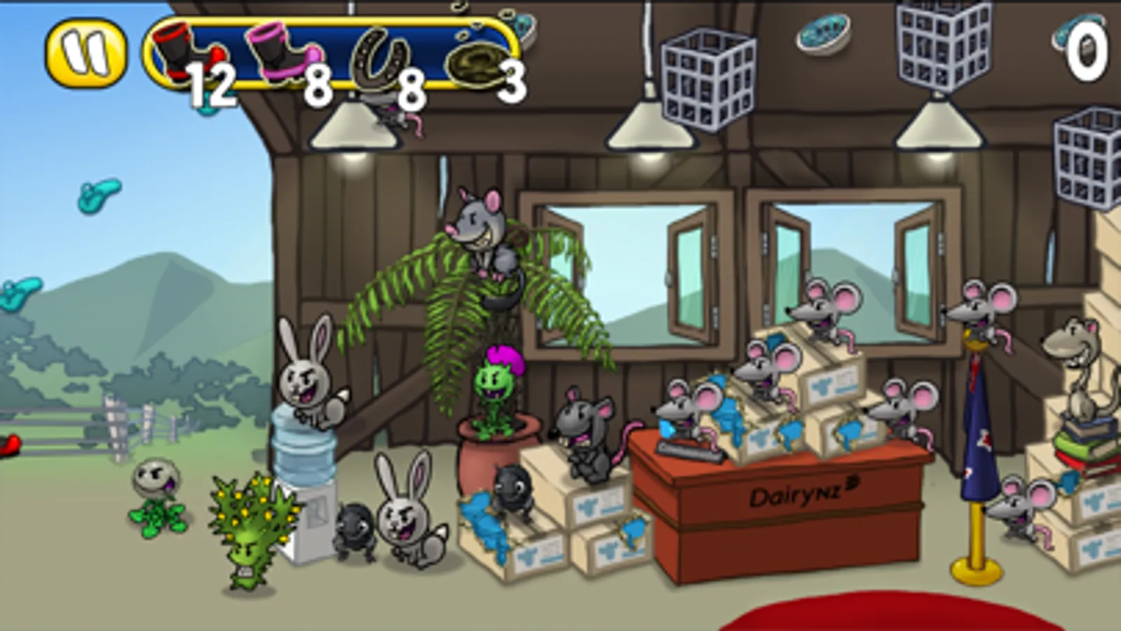 Help Rosie clean up the country, by using her number 8 wire powered, gumboot flinging, Cowtapult, to give pests like Possums, Stoats, Rabbits, Thistles, Beetles, Weevils, and other hidden enemies the boot.