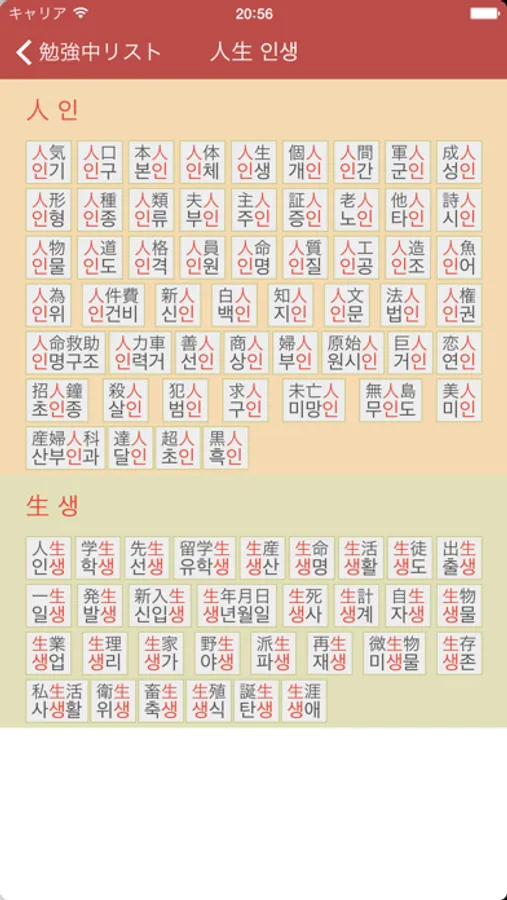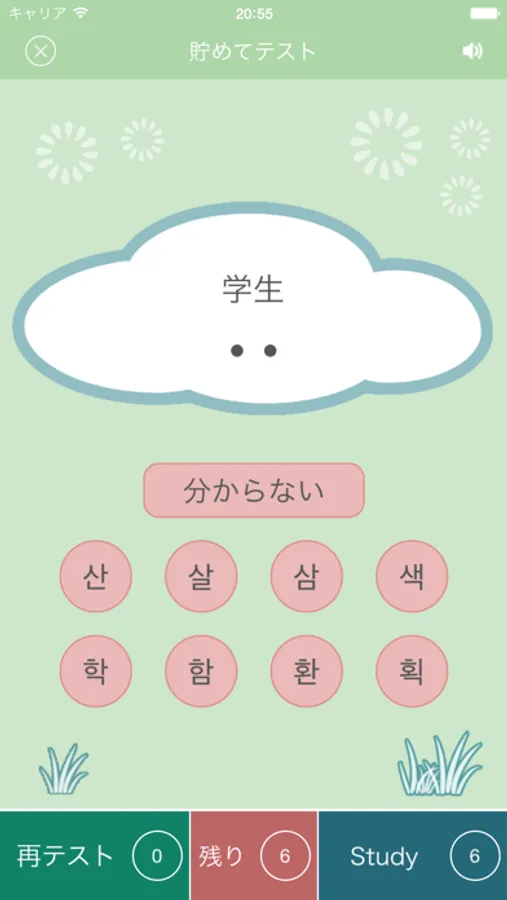 -ハングルモードはハングルから日本の漢字表記を当てるクイズが出ます。