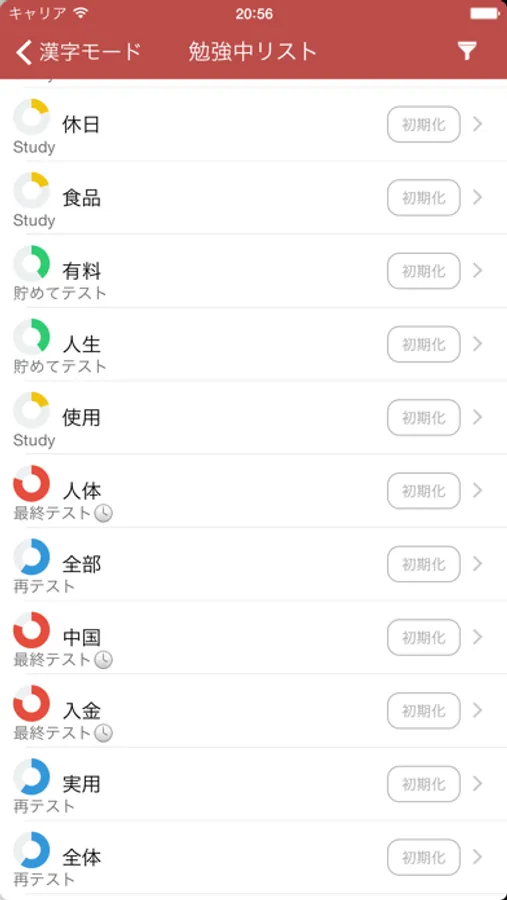 -なので一つの単語はすべてのテストを通過できるまで繰り返して勉強•テストができます。