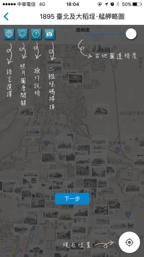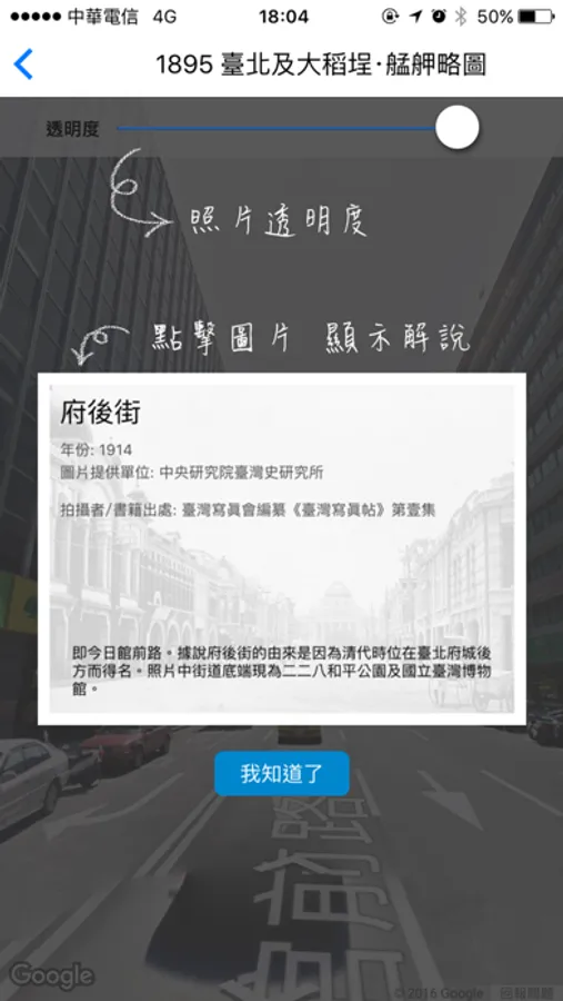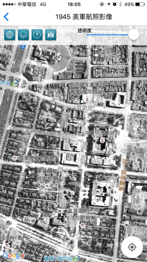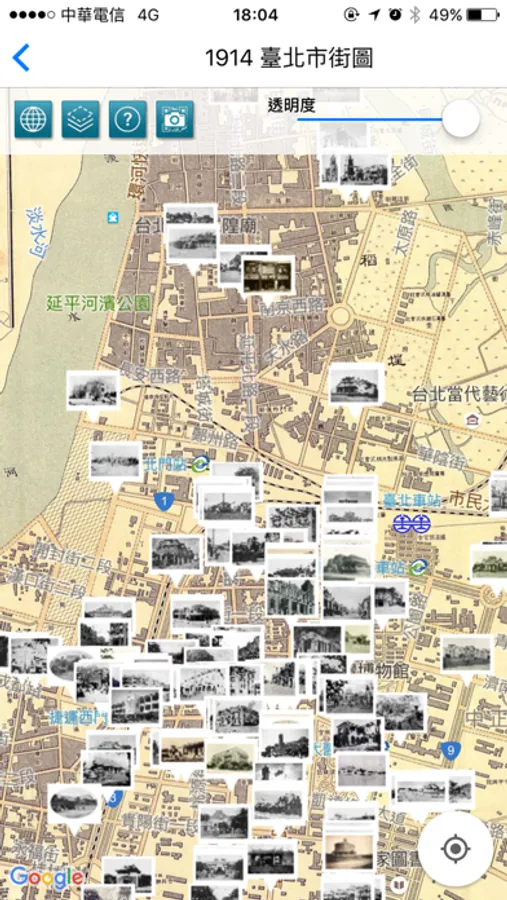 Taipei Historical Maps combines maps and photographs recorded between 1895 and 1974, and integrates them into present-day Taipei using Google Maps and Street View. Equipped with geographical location referencing, the app allows users to transcend history to see how Taipei has changed over time with the help of maps and photographs.