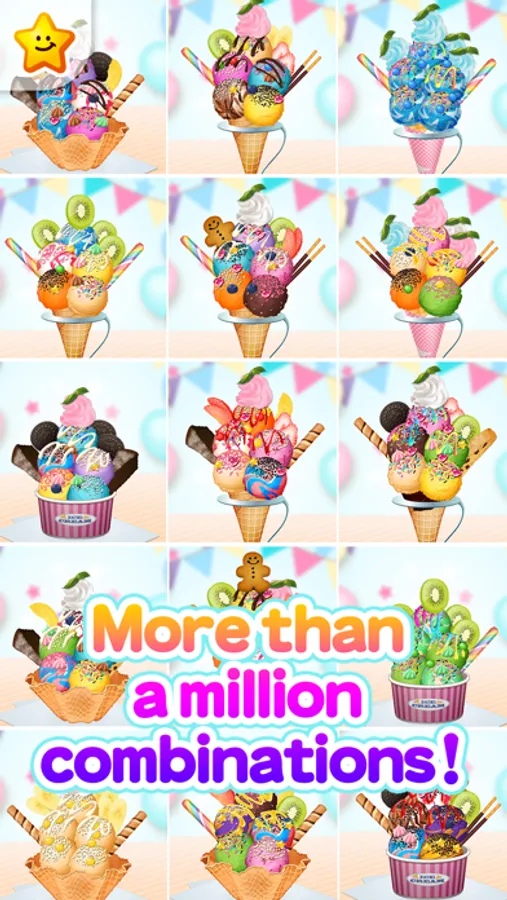 Find 18 different flavors, 5 different containers, 4 categories totaling 30 different toppings, and 5 different sauces! Find new and wonderful combinations each and every time as you make special ice creams to your hearts content!