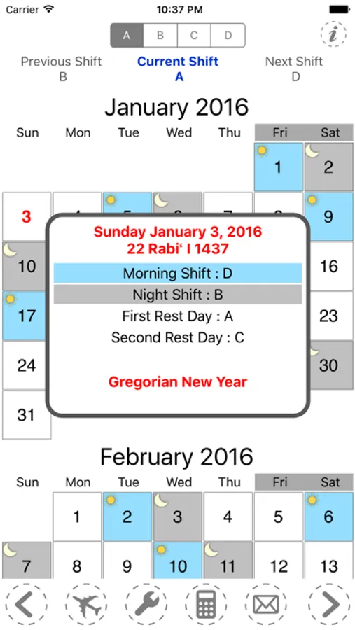 - In duty shift, next shift and previous shift