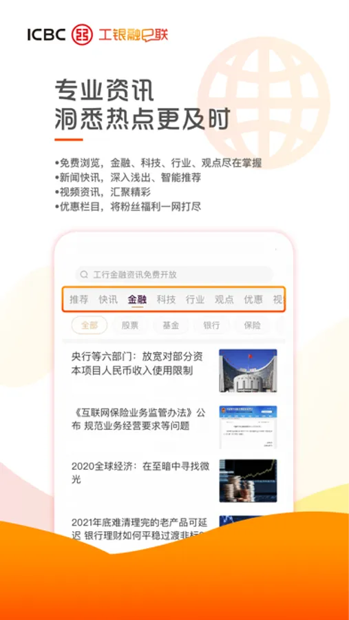 “工银融e联”,工行全新打造的移动金融服务平台,您的贴心财富顾问。