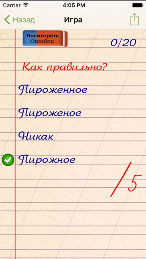 Каждая игра состоит из 20 вопросов. Вам дается 4 варианта написания непростого слова.
