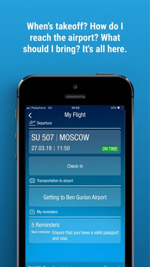 The Ben Gurion International Airport app (TLV) is an official cellphone application, developed by the Israel Airports Authority, for your convenience. With this app, you can discover all the information you need before even reaching the Ben Gurion Airport , as well as throughout your stay at the airport.