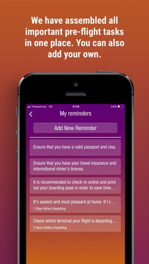 • Enter personal tasks that will help you remember what you need to do and receive suggestions for tasks to perform before your flight.