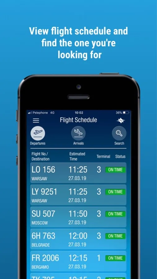 • Access an updated flight timetable for Ben Gurion Airport (both arrivals and departures) including search and tracking options for the information relevant to your flight.