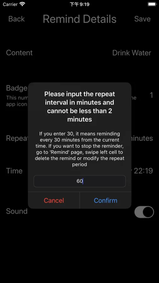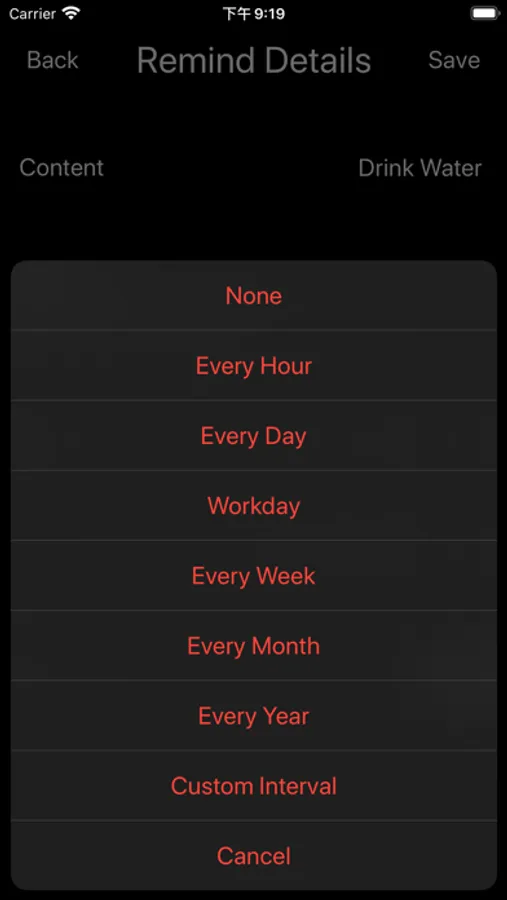 ◆ You can set repeat every hour, every day, every week, every month, every year, or set the reminder of any number of minutes, such as reminding every 30 minutes, or reminding every 60 minutes;