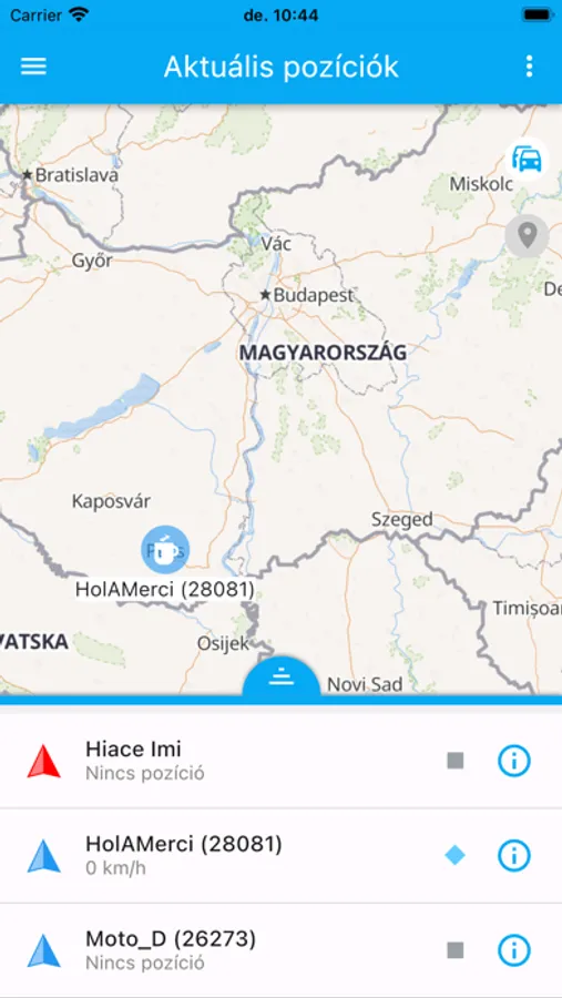 - követhető egy kiválasztott jármű helyzete és mozgása