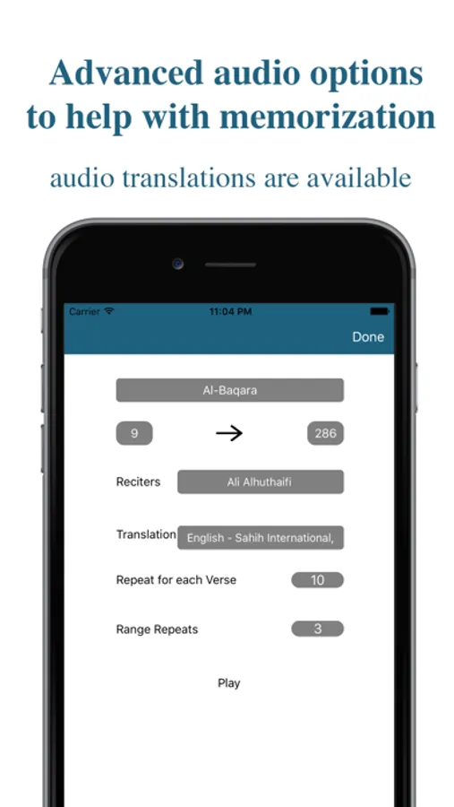 ◉ Synchronising between recitaion and voice translation (repeat the translation after the recitation).