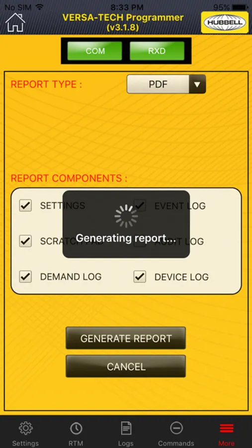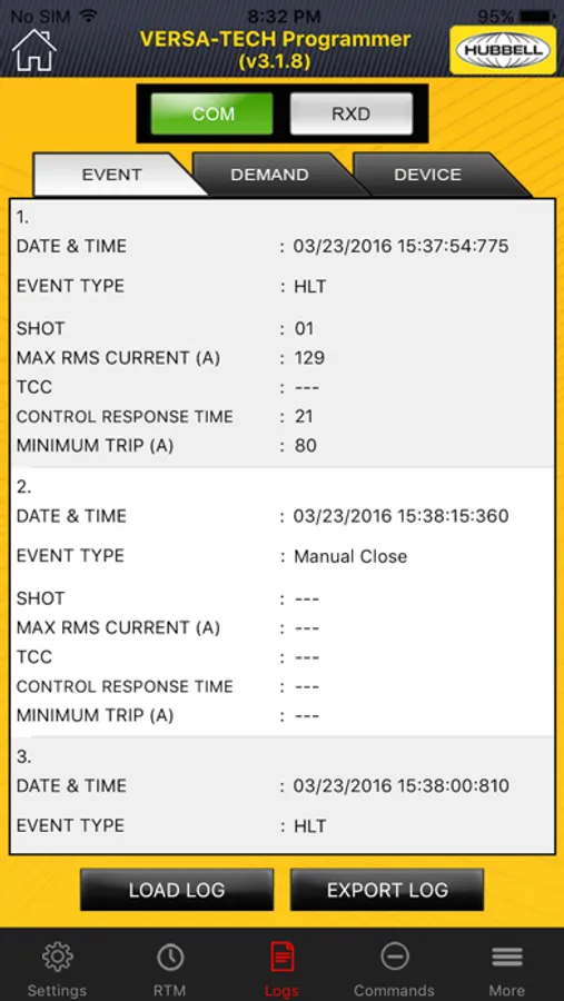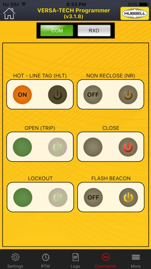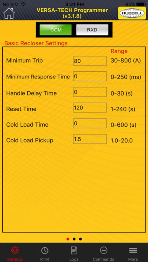 The Hubbell Power Systems 'VersaTech® Recloser Programmer' for iPad and iPhone apps allow communication with Versa-Tech® I (VT-I), Versa-Tech® LT (VTLT), Versa-Tech® II (VT-II) or Versa-Tech® XC (VT-XC) Reclosers equipped with WiFi modules. With the iPad version, users can read and program settings, download Event and Data Logs and perform other functions, as they would when using a laptop computer and a remote radio. The iPhone version has restricted capabilities such as viewing, generating reports, and limited command functions.