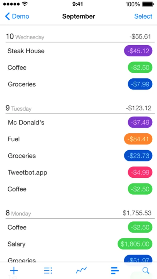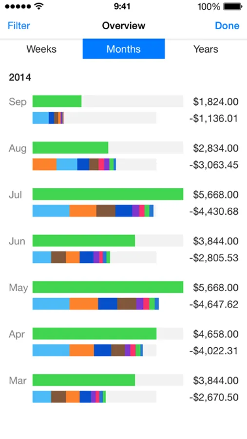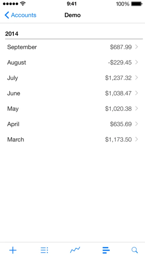 Beautiful line and bar charts make analysing your income and expenses fun. The app is designed to be easy to use on the go and gets out of your way quickly.