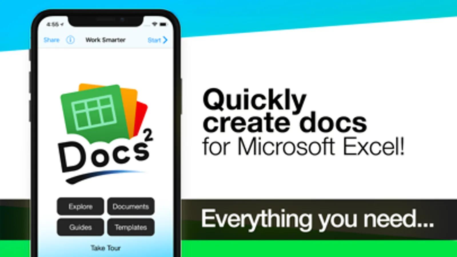Get Docs² for everything you need to begin quickly creating Microsoft Excel docs! Work smarter with great videos to guide you through the essentials, a convenient document browser to edit online and on the go with your favorite apps, plus free templates to help you create beautiful docs. All together in the smartest bundle for Microsoft Excel!