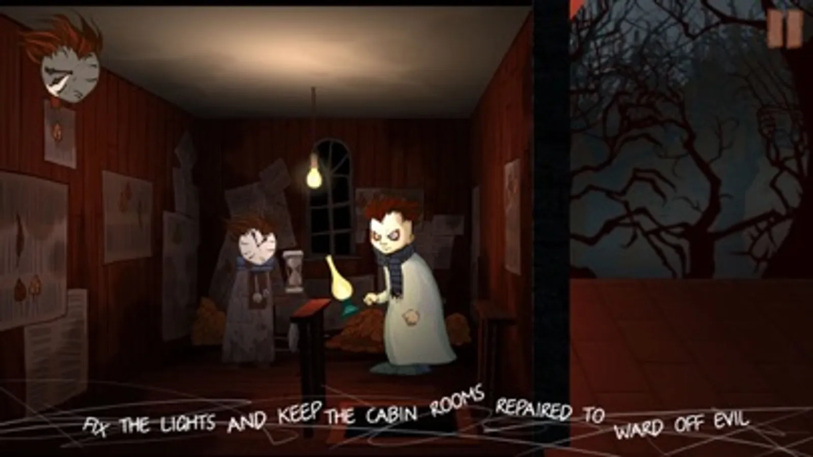 - Fix the lights and keep the cabin rooms repaired to ward off evil.