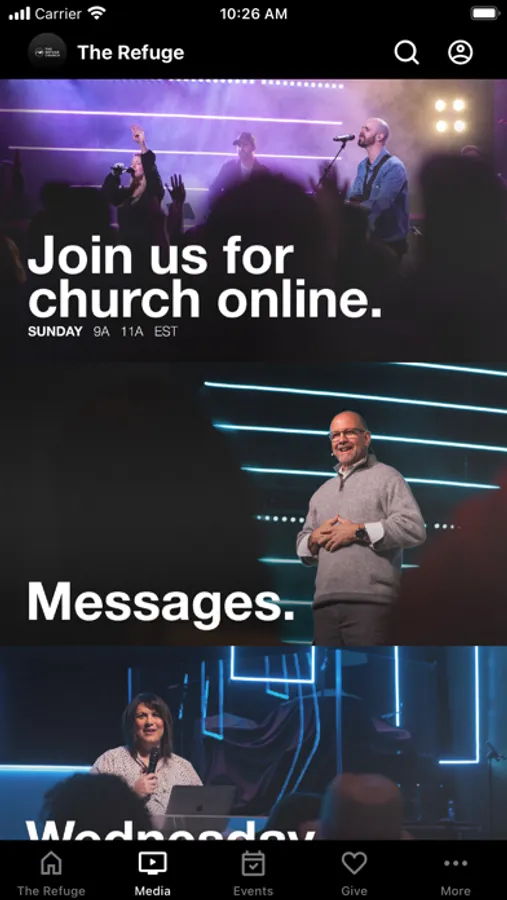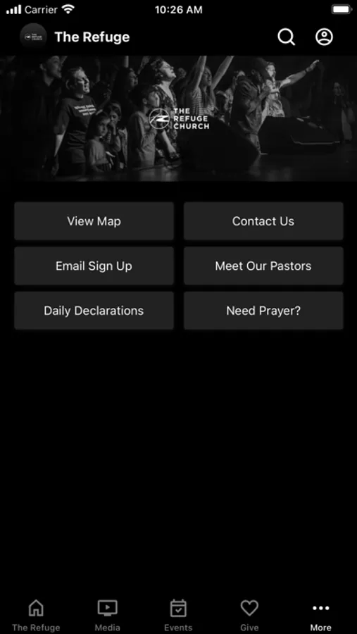 The Refuge mobile application was developed with the Subsplash App Platform.