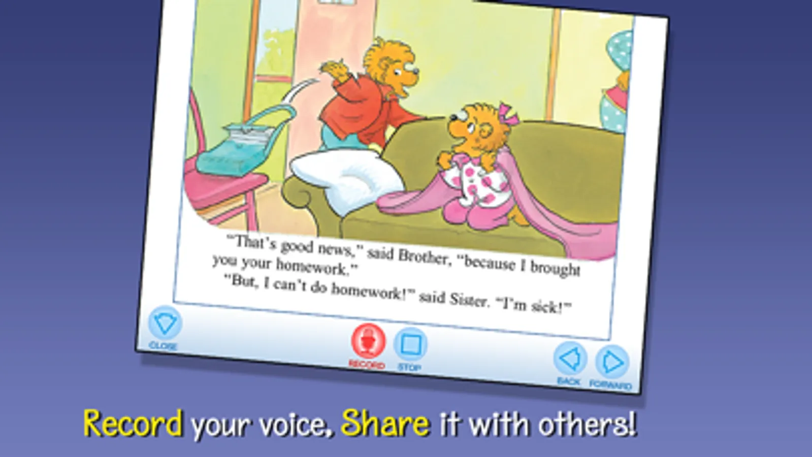 Join the Berenstain Bears in this interactive book app as Sister Bear wakes up sick one day and has to stay home from school! Explore pictures, learn new vocabulary, and personalize the story with your own narration. How will Mama take care of Sister and get her healthy and back to school?