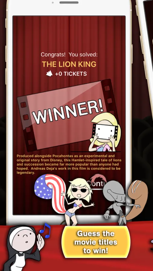 It's a shame this has to be a "feature." Play our game when you want it, however you want it. No time restrictions, no distractions in your notification menu, no bugging your friends to move forward. If you're good at the game and love a challenge, play it all for free! If you want to buy-in and unlock everything up front, you can do that too. Skipping levels is free, so complete each category in whatever order you like! There is also a hint system for when you're stuck on a particular movie.